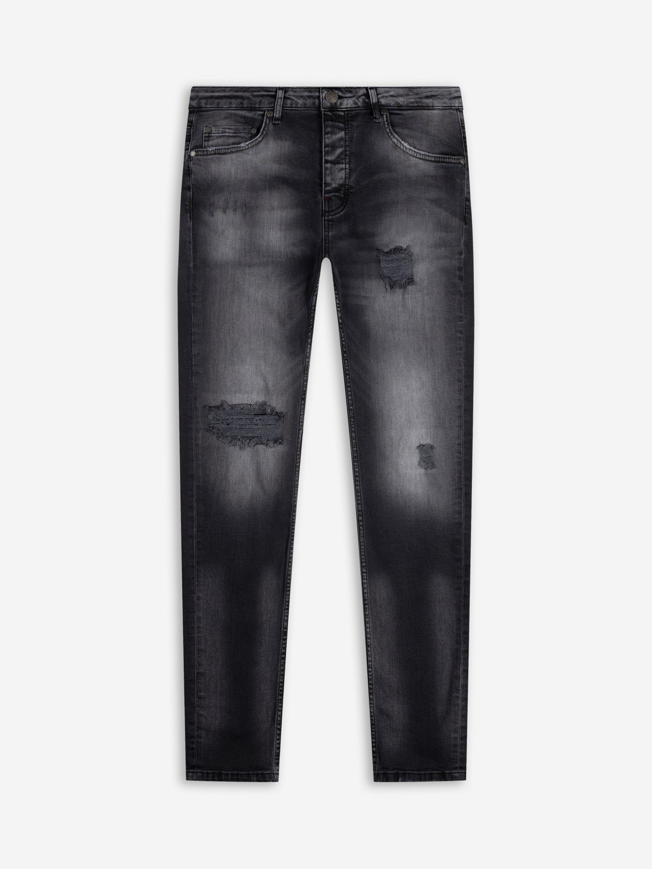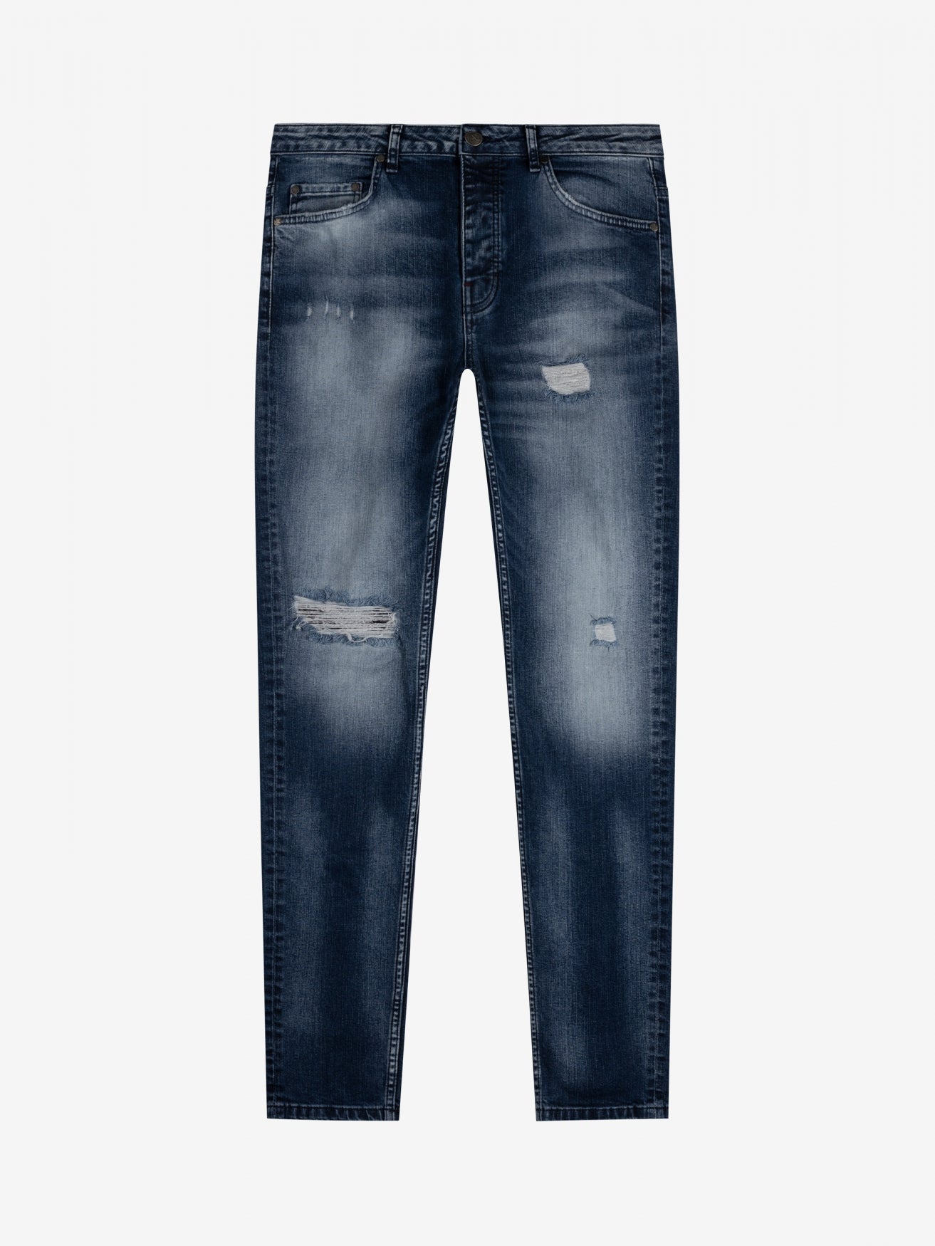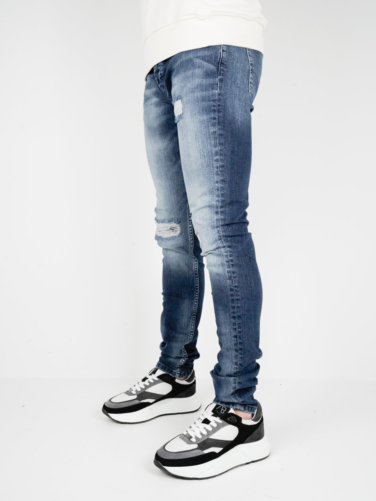 - Subtiele beschadigingen: Strategisch geplaatste scheuren voor een stoer, maar ingetogen design.