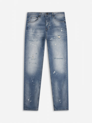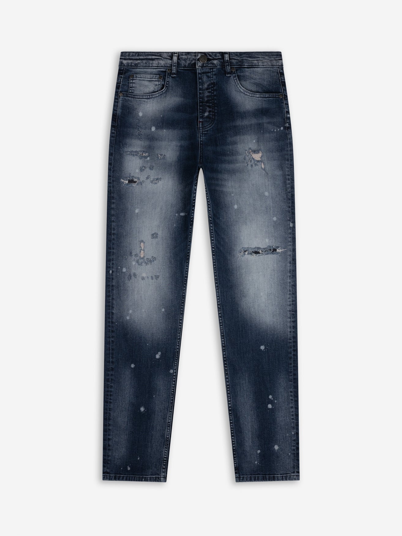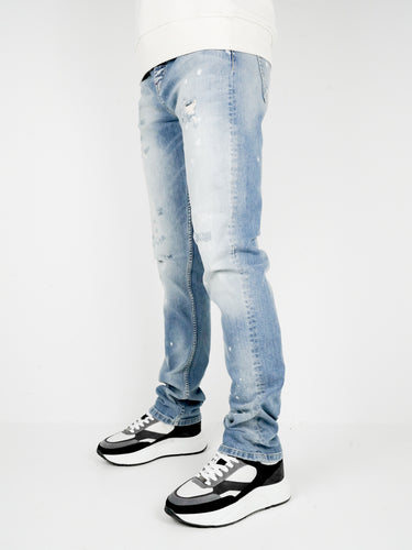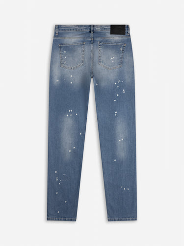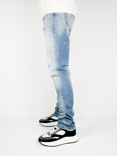 Crafted from high-quality denim material, these jeans provide a durable and comfortable fit that lasts all day long. The paint accents add a subtle touch of originality to your look, making these jeans a standout addition to your wardrobe.